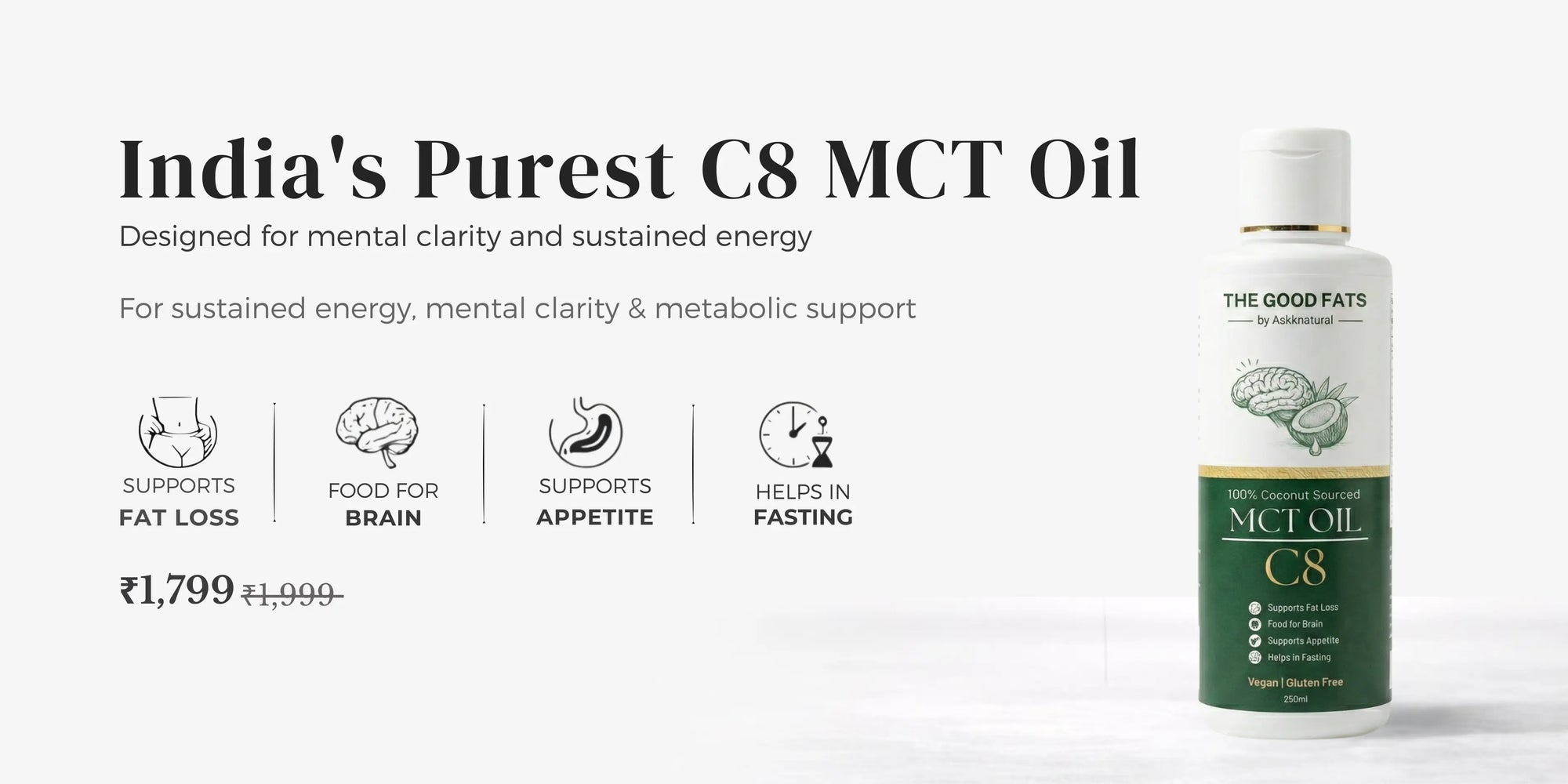 Not all MCT Oil are the same. Most brands use C12 and C10 because they're cheaper, but they digest slowly and can upset the gut. C8 MCT Oil is the cleanest part: fast energy, easy digestion, zero heaviness.